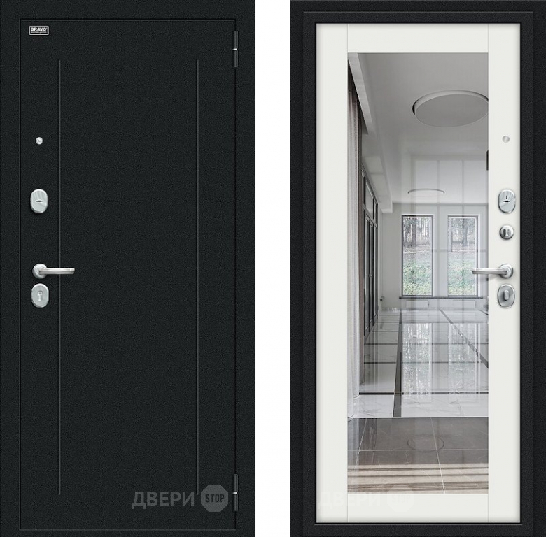 Входная металлическая Дверь Bravo Флэш Букле черное/Bianco Veralinga 860х2050 мм