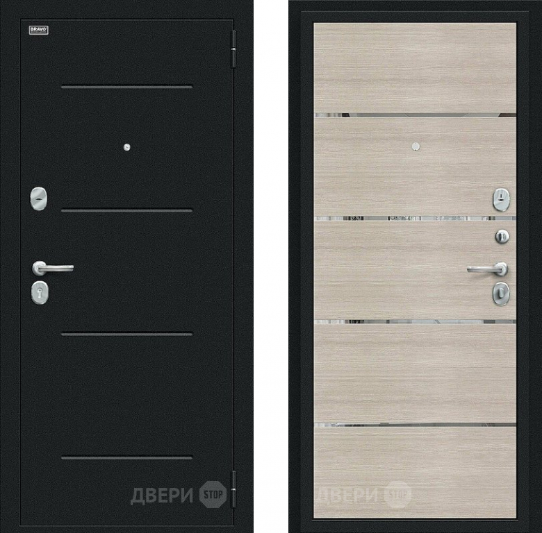 Входная металлическая Дверь Bravo Лайн Букле черное/Cappuccino Veralinga 860х2050 мм