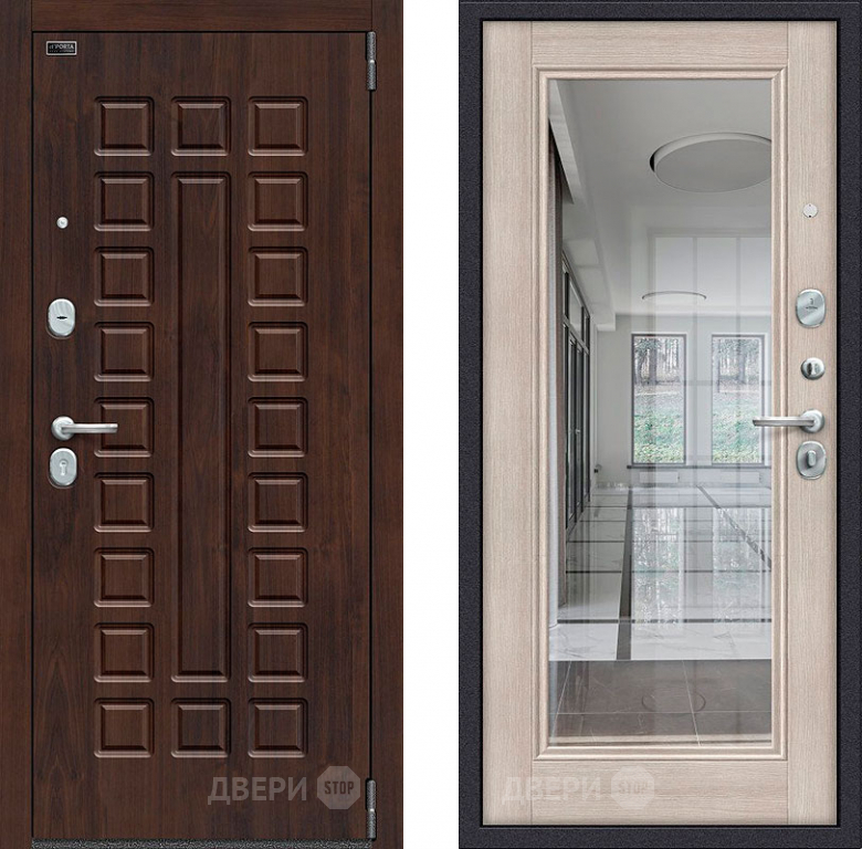 Входная металлическая Дверь Bravo Porta S-3 51/П61 с зеркалом Капучино 860х2050 мм