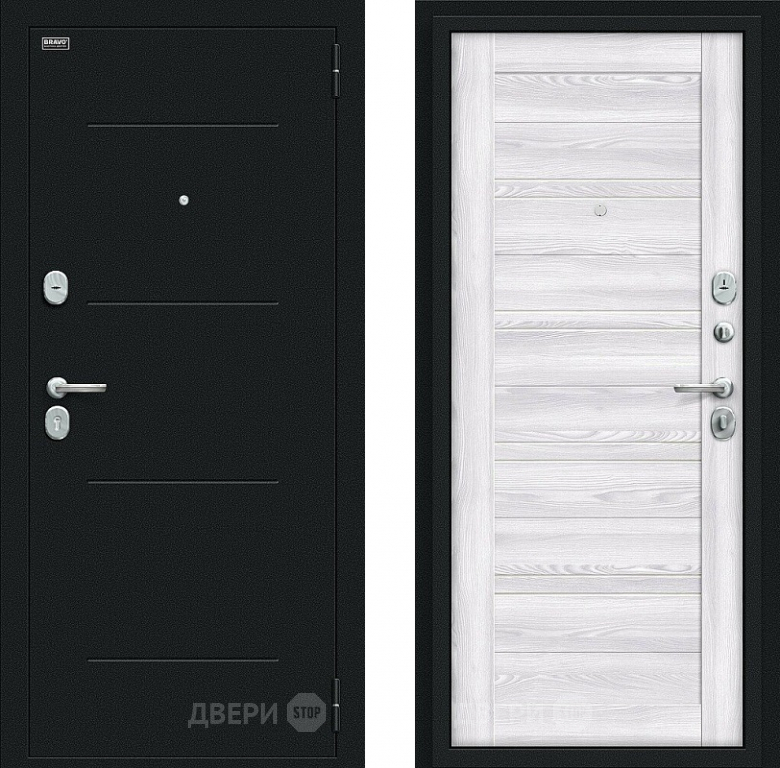 Входная металлическая Дверь Bravo Сити Kale Букле черное/Riviera Ice 860х2050 мм