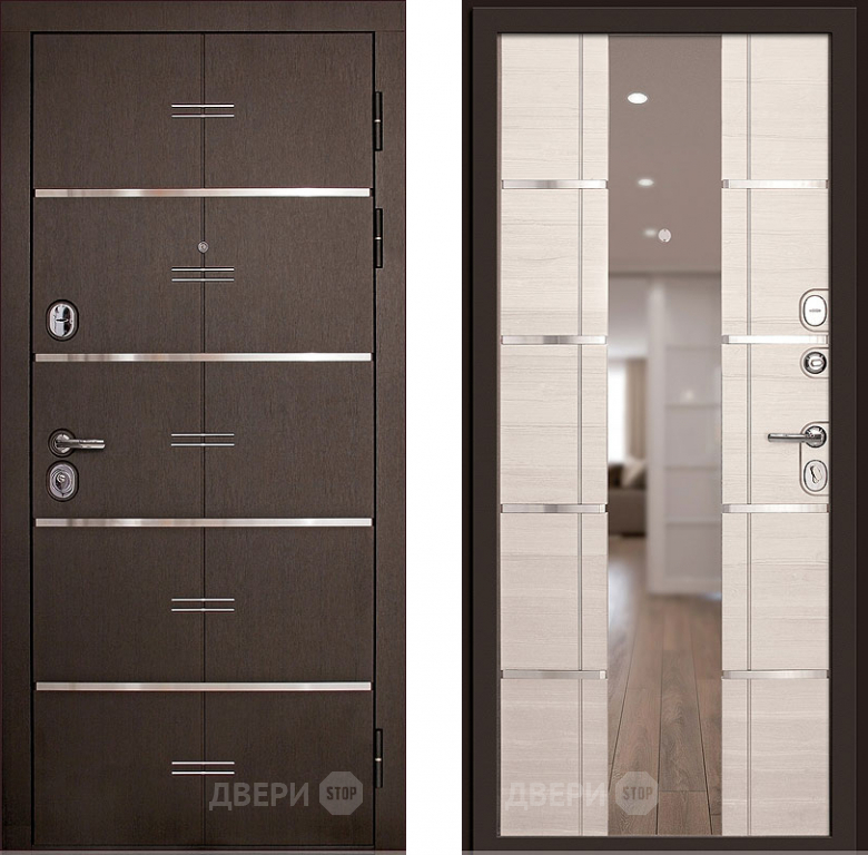 Входная металлическая Дверь (Дверной Континент) Савона с зеркалом Беленый дуб 860х2050 мм