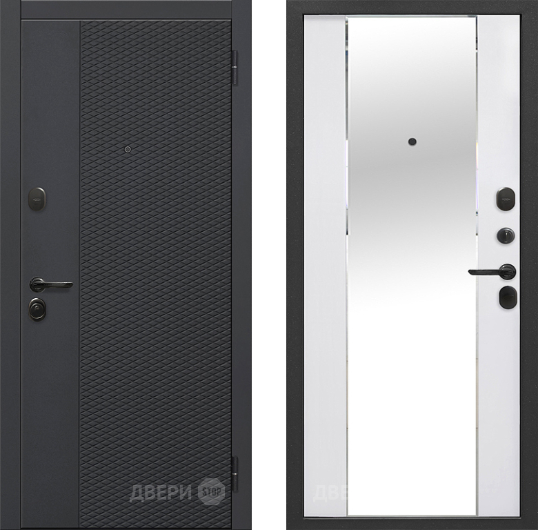 Входная металлическая Дверь Флорида Зеркало Фацет Эммалит Белый 860х2050 мм