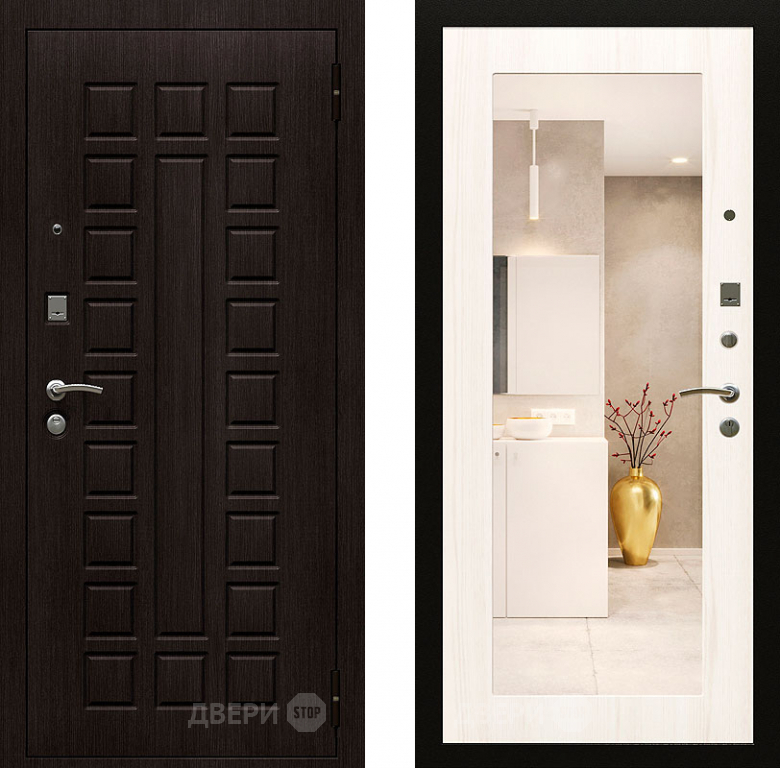 Дверь Райтвер Сенат-лайф с зеркалом Беленый Дуб 960х2050 мм