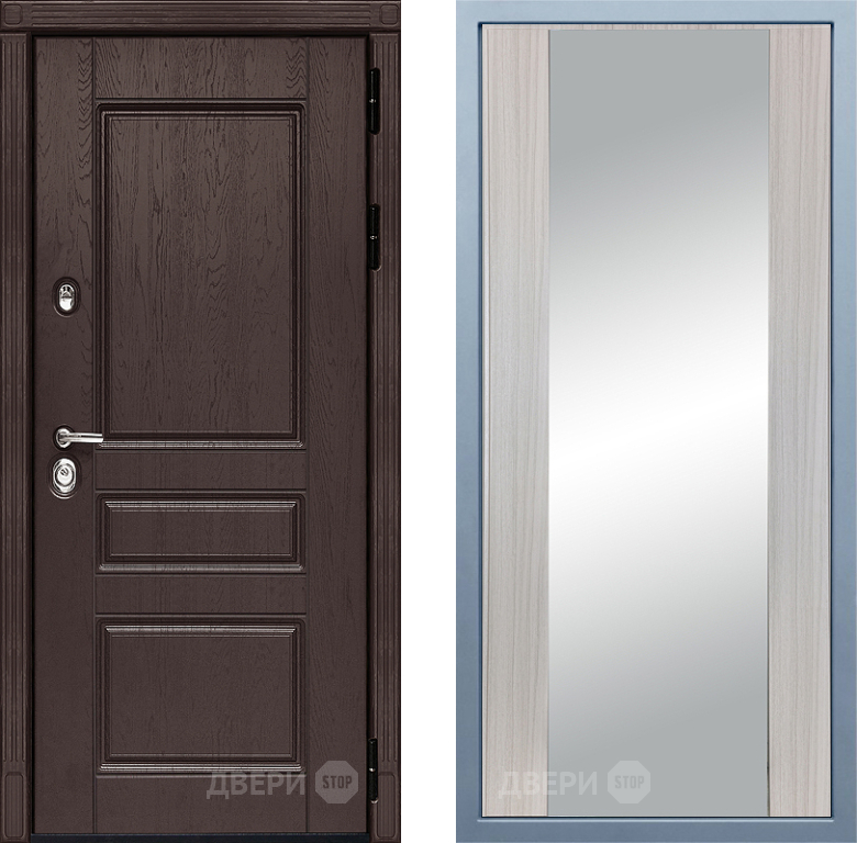 Входная Дверь Дива МД-90 Д-15 Зеркало Сандал белый 860x2050 мм