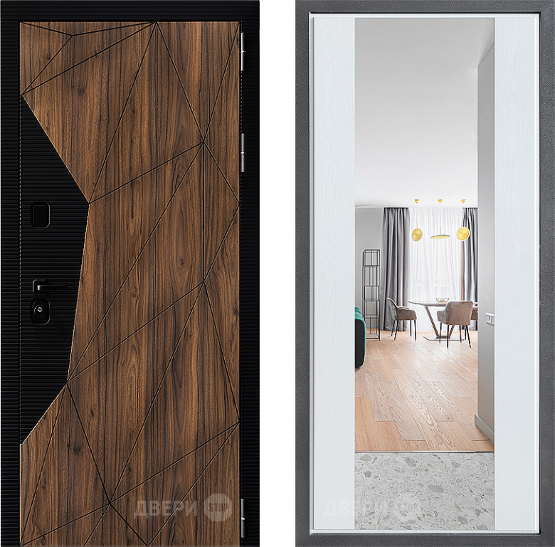 Входная Дверь Дверной континент ДК-11 ФЛЗ-1 Зеркало Белое дерево 860x2050 мм