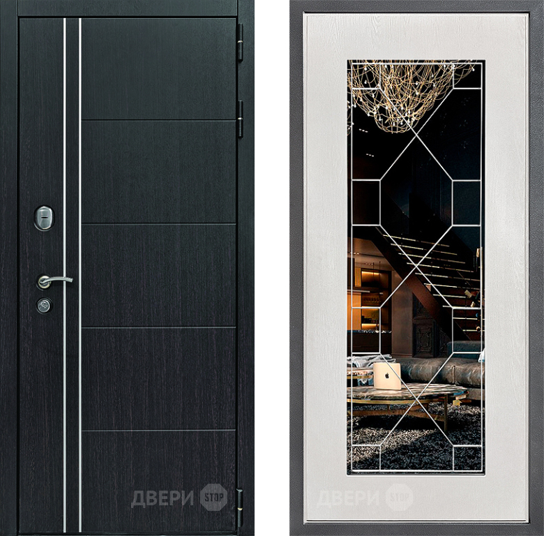 Входная Дверь Дверной континент Теплолюкс Дизайн ФЛ-Тиффани Зеркало Белое дерево 860x2050 мм