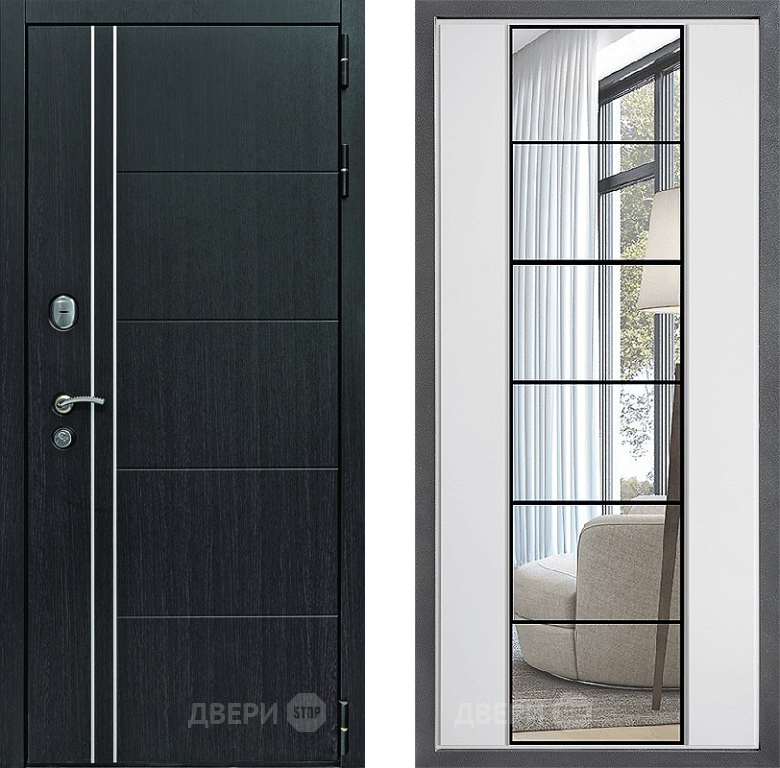 Входная Дверь Дверной континент Теплолюкс Дизайн ФЛЗ-2 Зеркало Белый софт 860x2050 мм