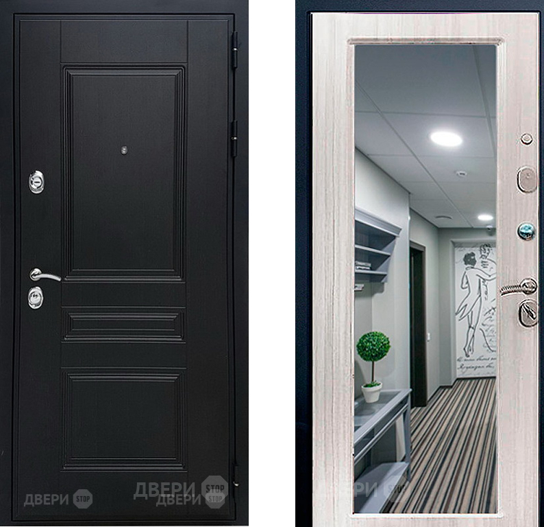 Входная Дверь Геркон (Gercon) Лондон панель МДФ с зеркалом Сандал белый 960x2050 мм