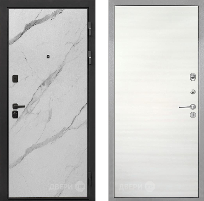Входная Дверь Интекрон (INTECRON) Профит Black Мрамор Арктик Гладкая Дуб сильвер поперечный 960x2050 мм
