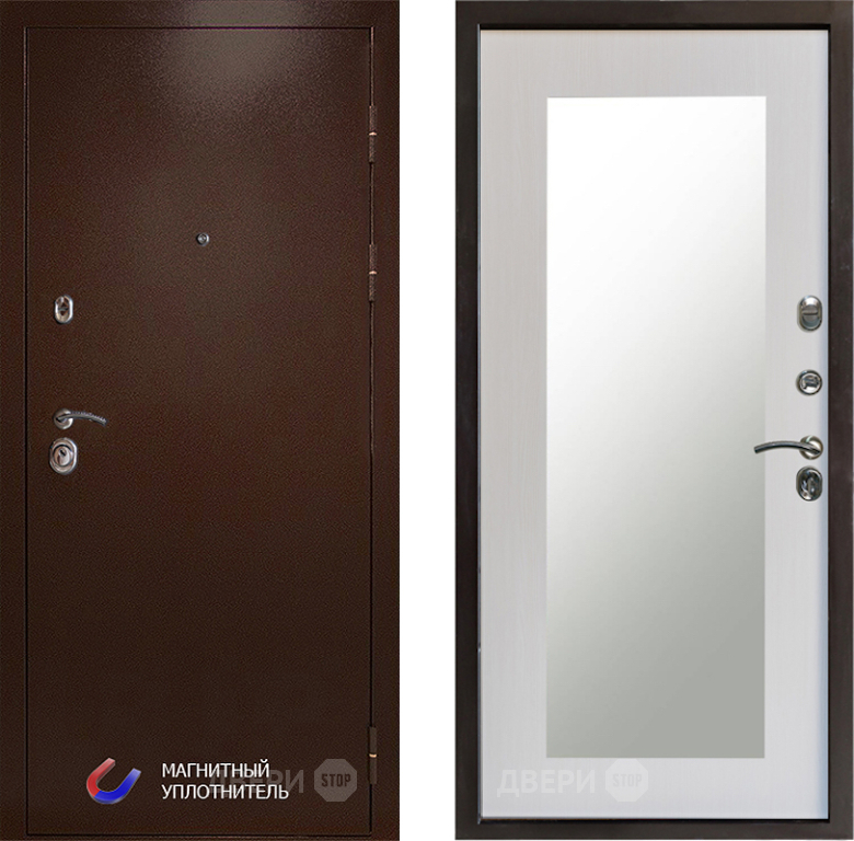 Входная Дверь Престиж Медь Зеркло Пастораль Лиственница белая 860x2050 мм
