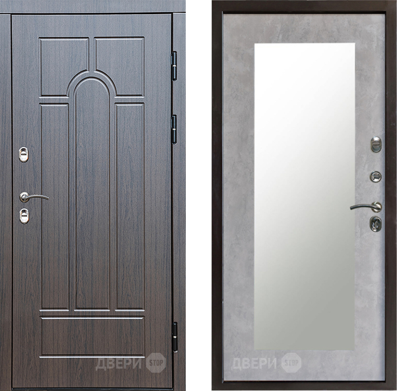 Входная Дверь Престиж TERMO с терморазрывом Арка Зеркало пастораль Бетон светлый 860x2050 мм