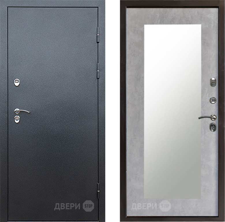 Входная Дверь Престиж TERMO с терморазрывом Снегирь Серебро Зеркало пастораль Бетон светлый 860x2050 мм