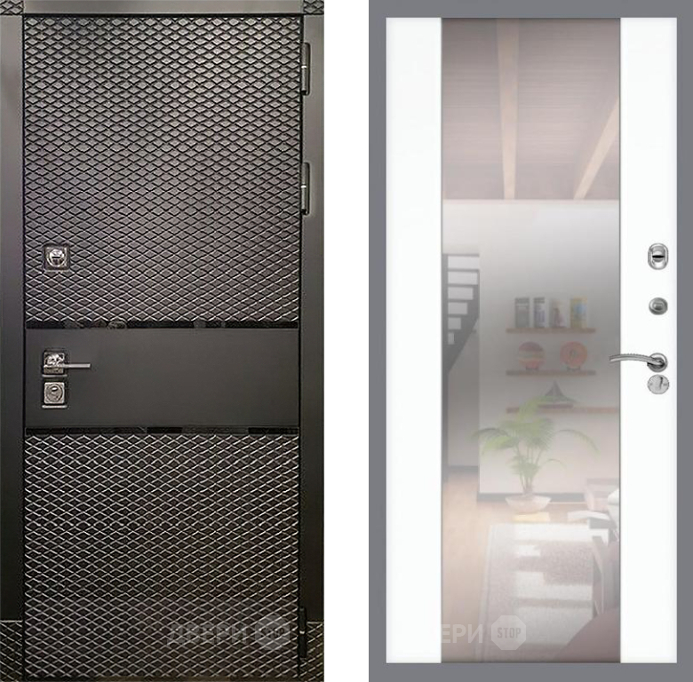 Входная Дверь Рекс (REX) 15 Черный Кварц СБ-16 Зеркало Силк Сноу 960x2050 мм