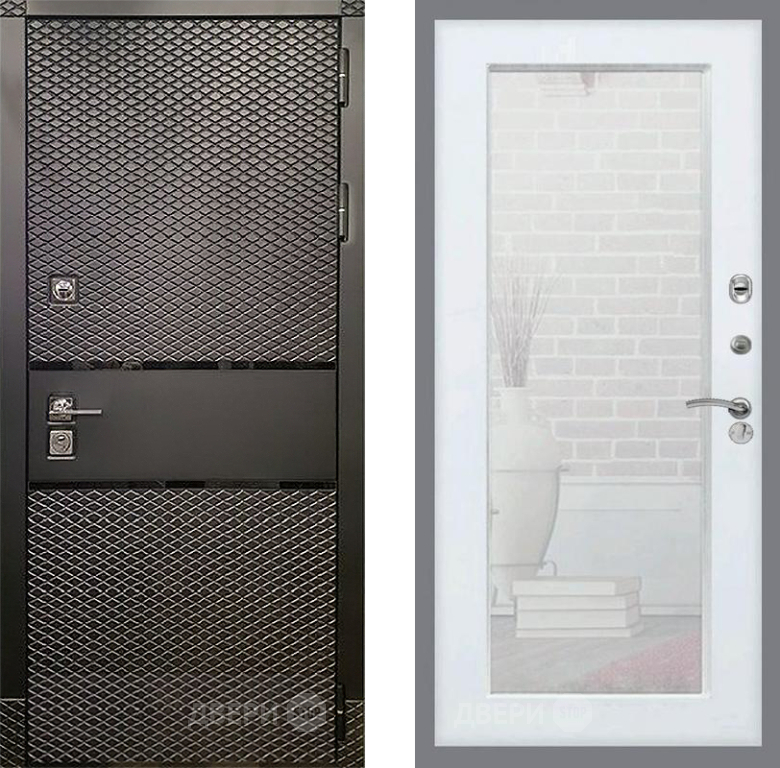 Входная Дверь Рекс (REX) 15 Черный Кварц Зеркало Пастораль Белый ясень 860x2050 мм