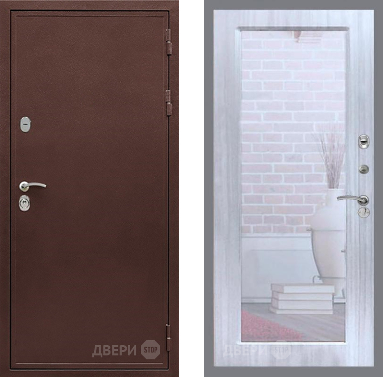 Входная Дверь Рекс (REX) 5А Зеркало Пастораль Сандал белый 860x2050 мм