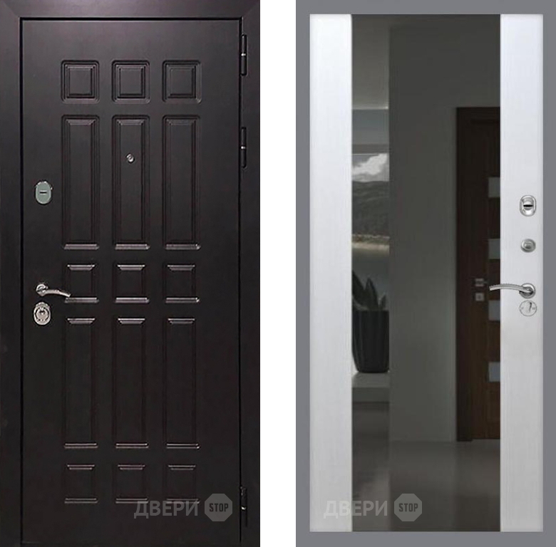 Входная Дверь Рекс (REX) 8 СБ-16 Зеркало Белый ясень 860x2050 мм