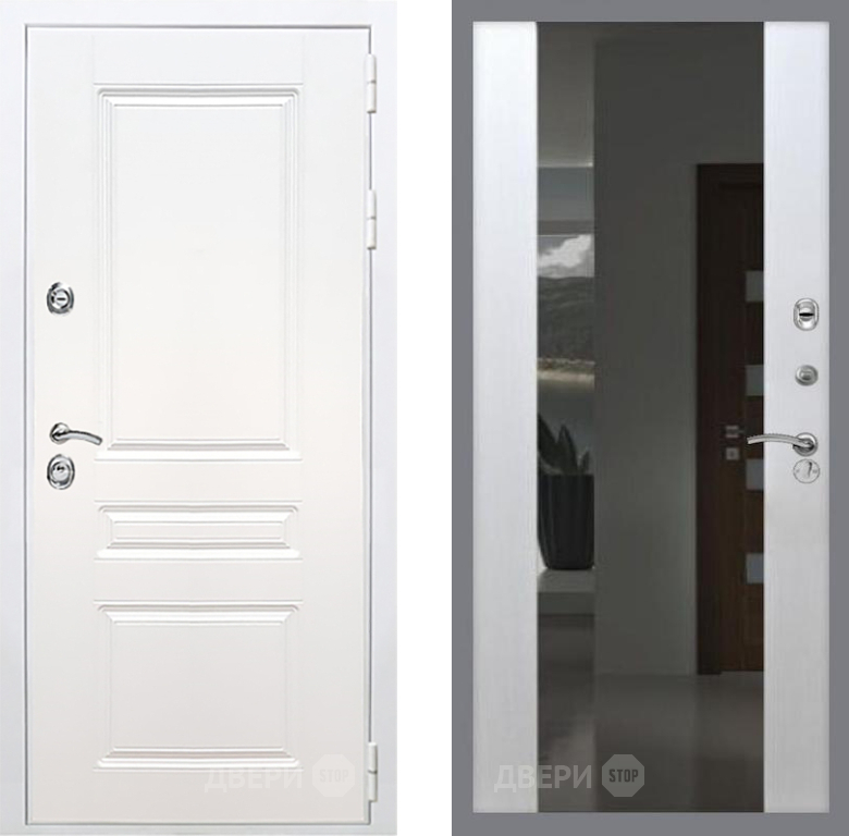 Входная Дверь Рекс (REX) Премиум-н Силк Сноу СБ-16 Зеркало Белый ясень 860x2050 мм