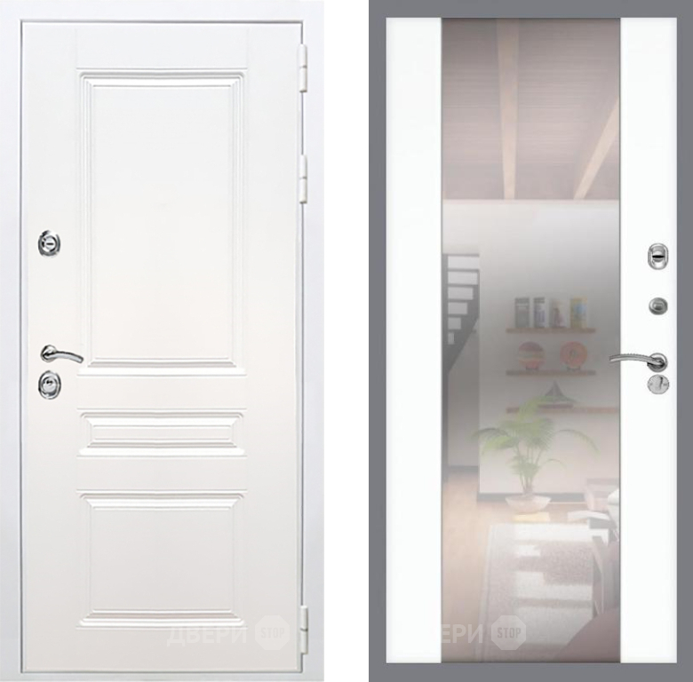 Входная Дверь Рекс (REX) Премиум-н Силк Сноу СБ-16 Зеркало Силк Сноу 860x2050 мм