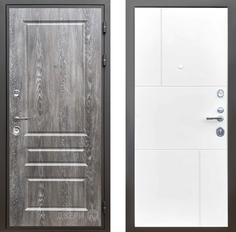 Входная Дверь Шелтер (SHELTER) Комфорт Дуб шале серебро 8 Белый матовый 860x2050 мм