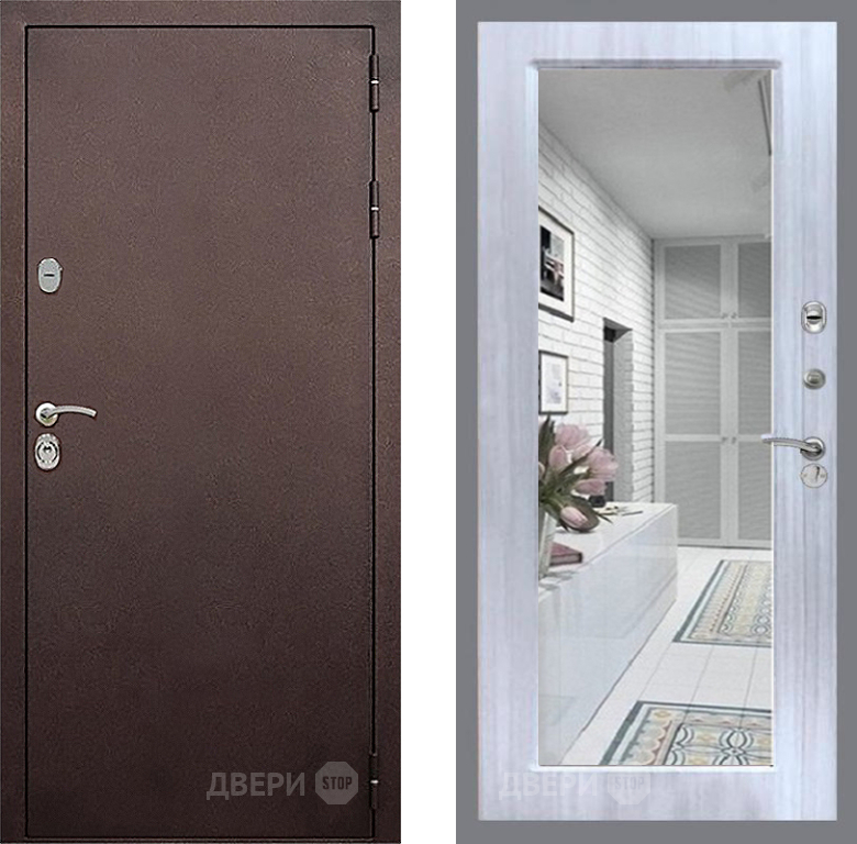 Входная Дверь Стоп КЛАССИК Медь Зеркало Сандал белый 860x2050 мм