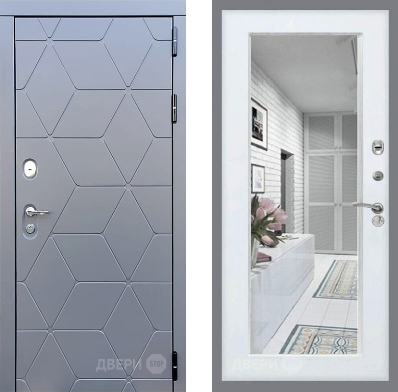 Входная Дверь Стоп КОСМО Зеркало Белый ясень 860x2050 мм