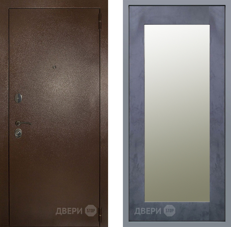 Входная Дверь Заводские двери Эталон 3к антик медь Зеркало Модерн Бетон темный 960x2050 мм