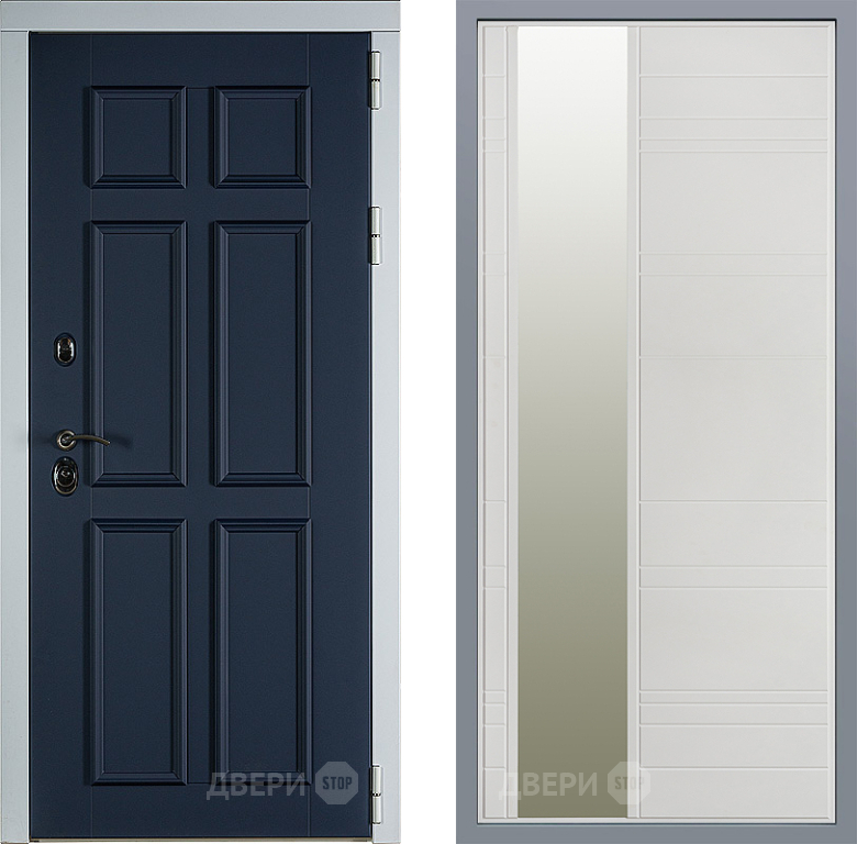 Входная Дверь Заводские двери Стокгольм Зеркало Лира Белый софт 960x2050 мм